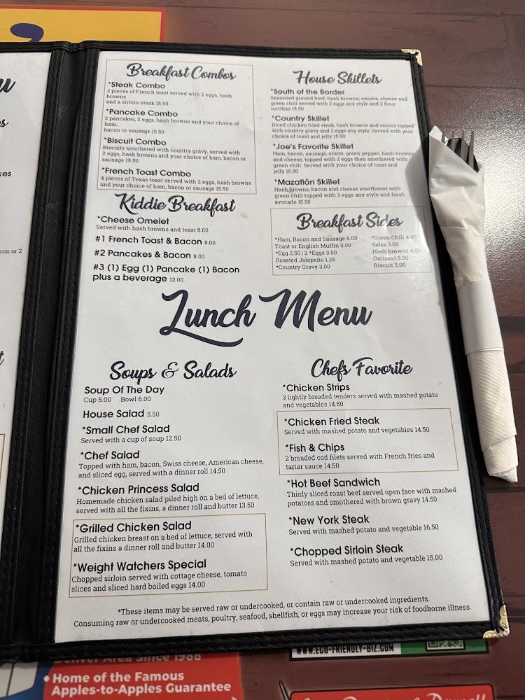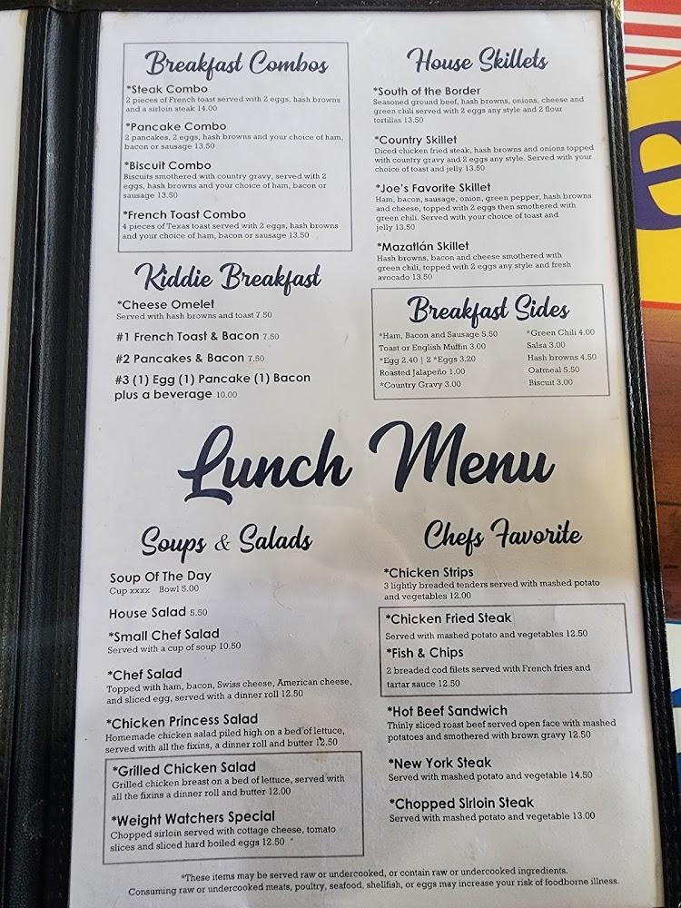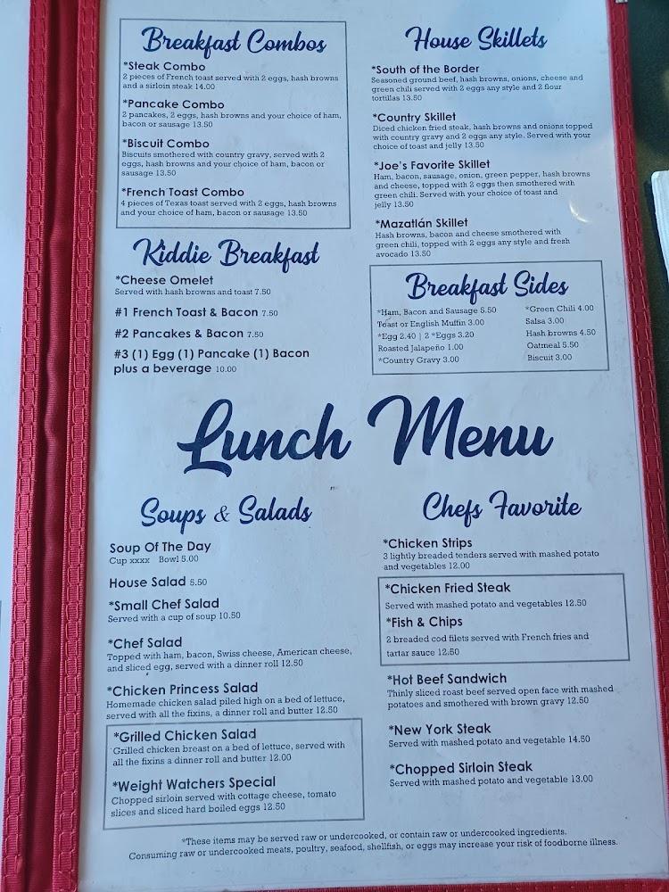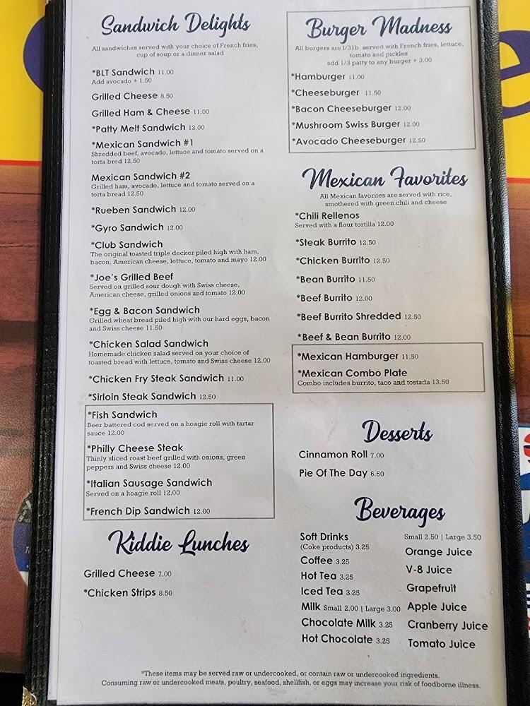 Joe's Cafe features a diverse menu that showcases breakfast and lunch favorites. Signature dishes include fluffy omelets, savory burritos, and classic sandwiches. Breakfast combos and sides cater to different appetites without breaking the bank. They offer unique local specialties alongside beloved classics.